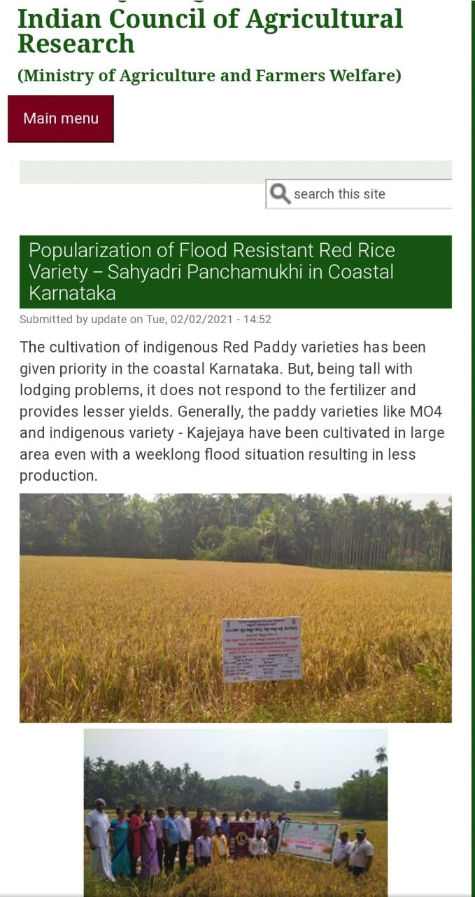 - Paddy- Variety: Sahyadri Panchamukhi